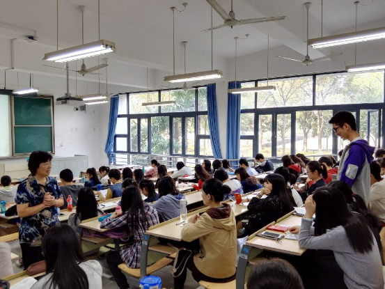丁霞萍老师以一名心系学生的老教授身份与现场观众积极互动,交流分享入党动机,解读她对大学教育之价值与意义的理解,呼吁广大青年学生“多读书、不断健全完善自我、发挥典范作用”,多做“无用”的练习,从而不断提高自己的判断力和心思缜密度。丁老师也结合个人所感所悟向在场学生介绍了诸多名人经典书籍、优秀演讲,引导学生适应新环境、融入新社会。丁老师也与年轻的学生分享了历届学长学姐的典范事例,以朋辈教育为青年指引方向:要促进生理、心理、社会的系统整合发展,态度决定高度,细节决定成败,一切基于价值观;剖析了马加爵、林森浩等案件出现的原因,以反面事例警醒青年学生:要把自己培养成对人民有用的人,喜欢别人也被别人喜欢的有用人才。“学政治,明事理,爱智慧”的主题深深印刻在每一位同学心底,无形却比任何实物更具震撼力。