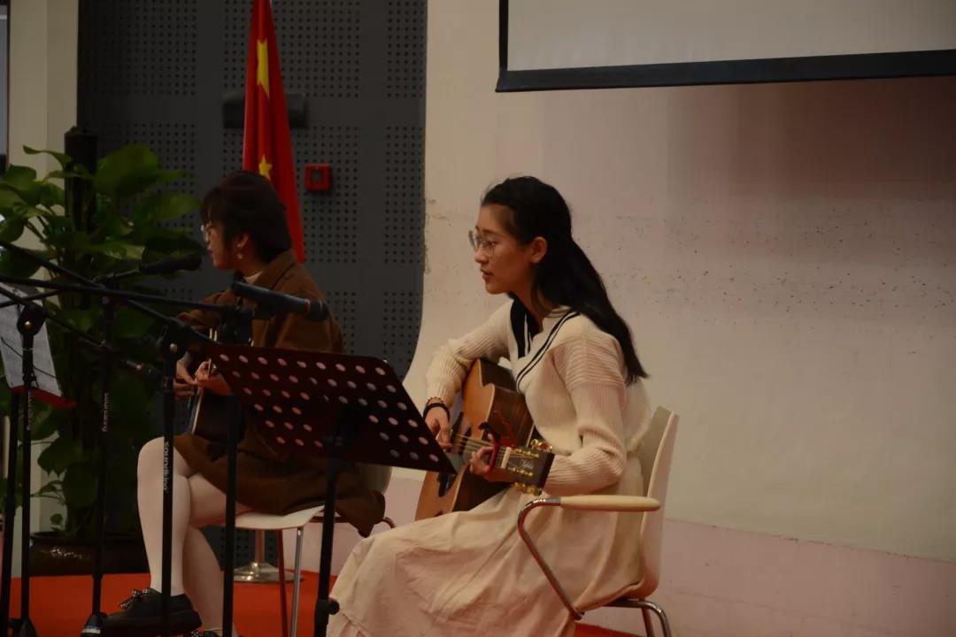 由英翻1901严钰婕同学和于依洋同学带来的温柔细腻的吉他弹唱让人印象深刻。在祖国七十周年生日时,在《江南》在东华遇见外院这个大家庭,是所有人的《小幸运》。