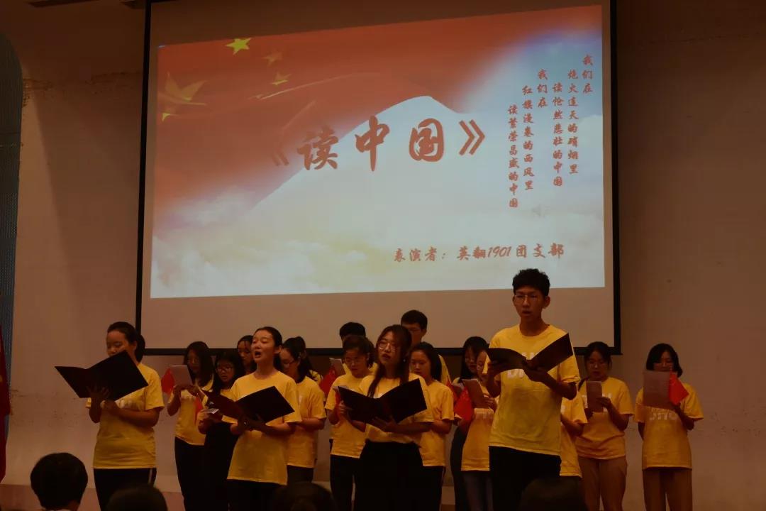 首先是英翻1901团支部带来的深情朗诵《读中国》,慷慨激昂振奋人心的声音读出了中华的崛起,复兴的希望和中国的辉煌。