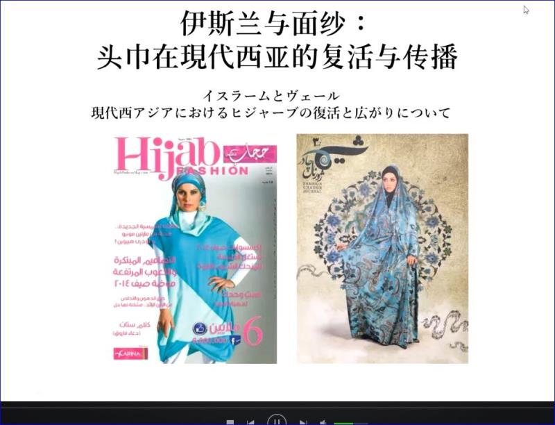 讲座一开始,后藤准教授就展示了2010年代伊朗和埃及的两本时装杂志的封面,立刻吸引了大家的注意力,眼前时尚的面纱与大家脑海里对伊斯兰女性面纱的认识完全不同,原来20世纪初,在西亚各地出现了服饰西方化的潮流,一直用面纱覆盖全身的女性出现了摘除面纱的动向,但在20世纪后半期,西亚很多国家的大部分女性都用面纱遮住身体,本以为会就此消失的面纱又在穆斯林女性之间复活了。面纱佩戴者的增加是如何发生的?伊斯兰与面纱的关系究竟是怎样的?就此问题,后藤老师从1979年后伊朗在国家层面上规定女性必须着面纱,与埃及女性自发着面纱的两种模式,对伊斯兰和穆斯林社会与面纱的关系进行了详细的讲解,具体描述了对伊斯兰的理解和实践的多样性和可变性,并思考这种多样性和可变性从何而来,以具有说服力的事例研究方法,提出了与“伊斯兰就是这样的”传统认识的不同看法,对理解全球化时代人类共同体的重要性具有积极的启发作用。