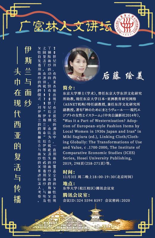11月3日,东京大学日本亚洲教育研究机构特任准教授,东洋文化研究所兼任准教授的后藤绘美老师应邀通过在线方式为澳门信誉最好十大平台师生举办了一场题为“伊斯兰与面纱—头巾在现代西亚的复活与传播”的学术讲座,澳门十大信誉网赌大全及兄弟院校的70多名师生参加了本次讲座。