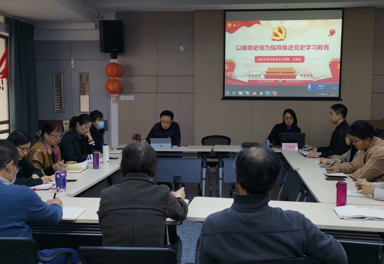 4月1日,澳门十大信誉网赌大全召开党委理论学习中心组(扩大)学习会,邀请上海市委讲师团党史学习教育专家宣讲团成员、十大信誉网赌马克思主义学院院长王治东教授作题为《将唯物史观贯穿“四史”学习教育》的专题辅导报告。学院党政领导、党委委员、师生党支部书记、专职党务干部、专职辅导员等参加学习。