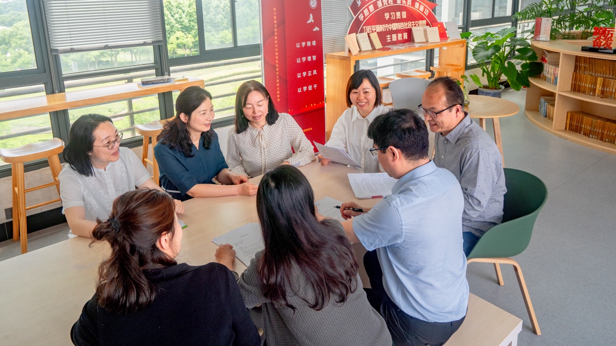 澳门十大信誉网赌大全在楼宇公共空间建设主题教育专题读书角,开放式阅读模式方便师生随时取阅,打造强化理论武装、加强党性修养的学习“微阵地”。学生党支部以读书角为阵地建设“书香支部”,除指定书目外,发挥专业优势研读《习近平谈治国理政》双语版等,将思想武装与专业学习深度融合。