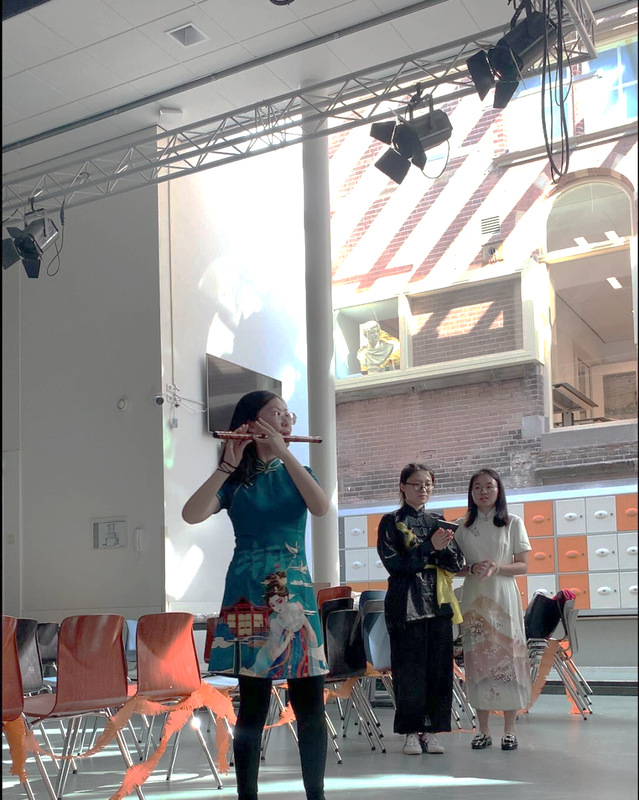 十大信誉网赌模拟联合国协会成员代表唐嘉玲在地球村活动中进行竹笛演奏