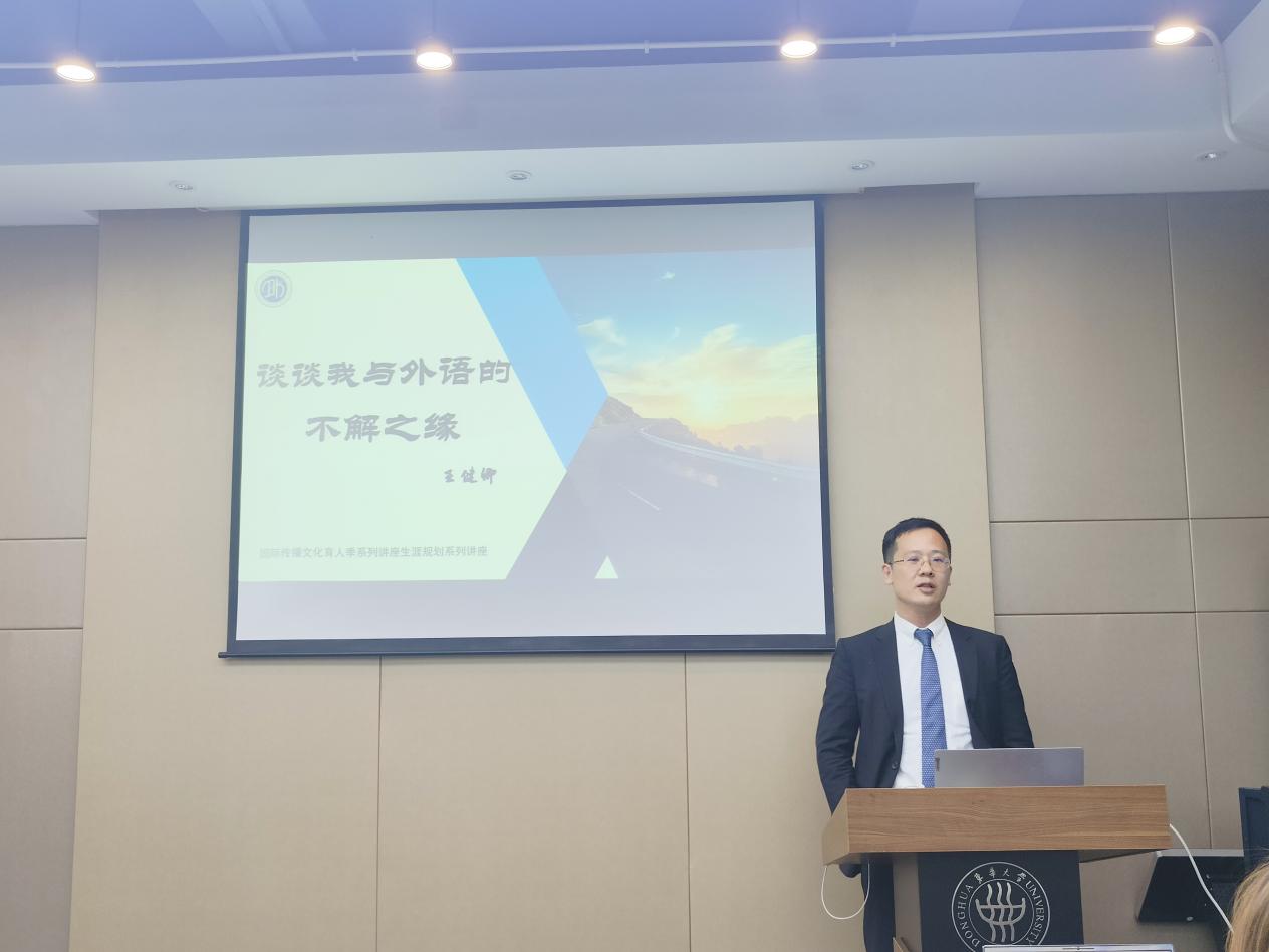 11月6日,澳门十大信誉网赌大全英语系04届校友,现任商务部外事司翻译处副处长、一级调研员王健卿先生应邀回到母校,与澳门十大信誉网赌大全在校师生畅谈语言学习与翻译工作经历,分享自己的为学为人之道。讲座由澳门十大信誉网赌大全党委副书记邓姗姗主持。