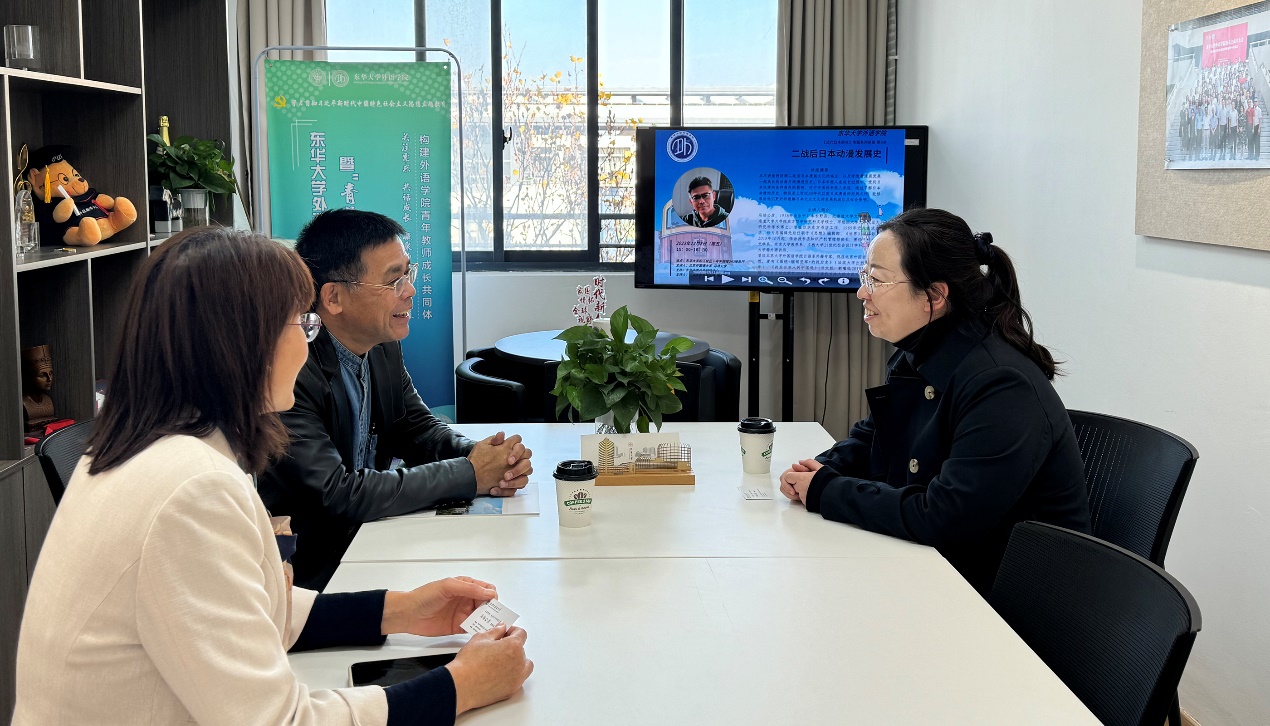 澳门十大信誉网赌大全始终高度重视日语国家级一流本科专业的建设和发展,院党委徐玥书记代表学院与马场公彦会面,双方就日语学科发展和日本文化的相关研究进行了交流。