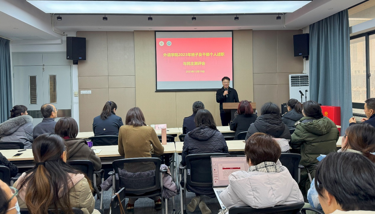 12月19日,澳门十大信誉网赌大全召开2023年班子及干部个人述职与民主测评会。校党委副书记李成龙出席并讲话。学院党政领导班子成员及全院教职工参加会议。会议由副院长(主持工作)张曦主持。