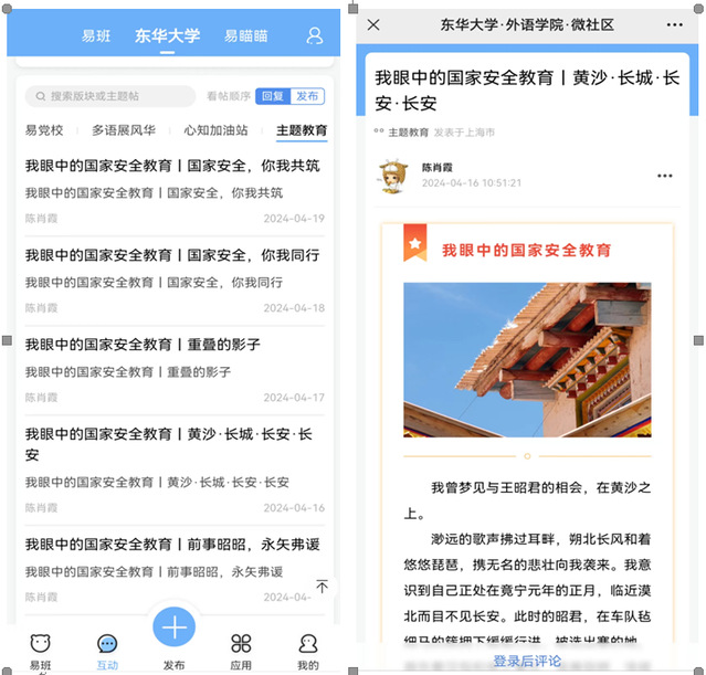 组织开展“全国大学生国家安全知识答题”活动。依托中国大学生、平安东华微信公众号,组织师生参与“国安在我心”知识宣传竞答活动,普及国家安全知识,引导大学生增强防范意识、国家安全意识,营造国家安全人人参与、人人有责的浓厚氛围。