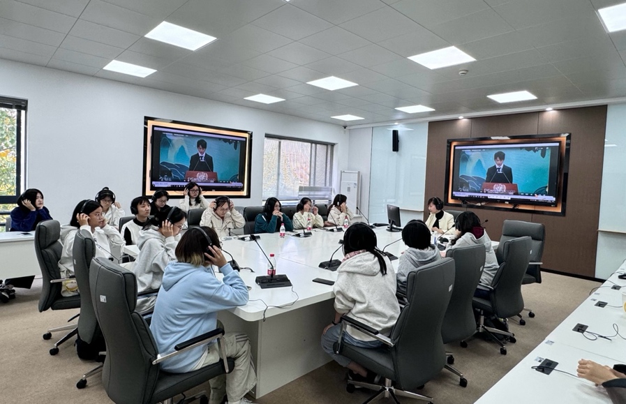 课程结束后,张老师鼓励学生在英语学习过程中培养即时思考和高效转述的能力,为未来的语言应用打下扎实基础。她表示,学院未来将持续为学生提供更多实践机会,帮助他们逐步掌握高水平的语言服务技能。学生们表示,这堂体验课让他们对同声传译有了深入的理解,激发了对语言职业发展的兴趣。