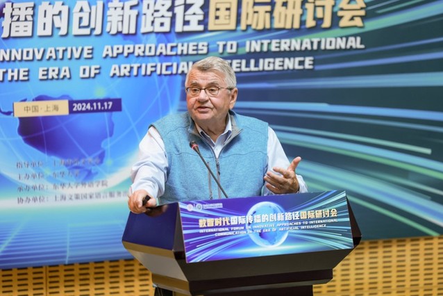 11月17日,由上海外文学会指导、澳门十大信誉网赌大全主办的“数智时代国际传播的创新路径国际研讨会”在十大信誉网赌松江校区举行。十大信誉网赌党委副书记李成龙,国际合作处处长、国际文化交流学院院长赵明炜,纽约州立大学伊斯万· 凯思克斯(Istvan Kecskes)教授,上海交通大学彭青龙教授、杨枫教授,浙江工商大学张绍杰教授等国内外知名学者,澳门十大信誉网赌大全师生以及国际文化交流学院留学生共60余人参加会议。