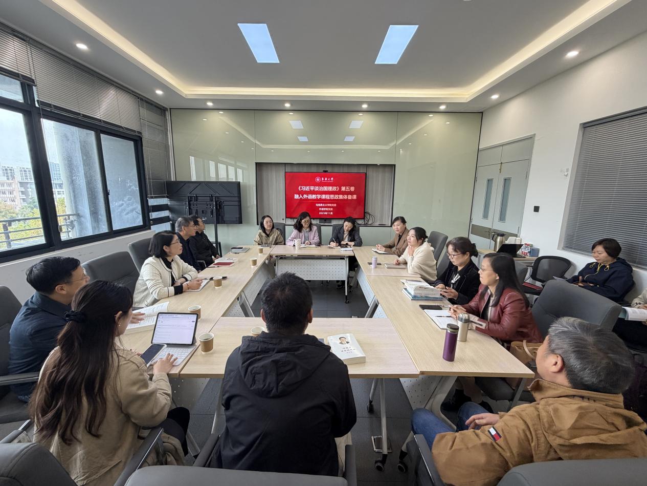 林惠英表示,此次集体备课会是推进习近平新时代中国特色社会主义思想“三进”工作的重要举措,充分发挥两个学院学科专业优势,紧紧围绕落实立德树人根本任务这一中心工作,共同研讨交流如何将《习近平谈治国理政》第五卷融入外语教学,转化为贴合学生认知特点、契合其专业需求的教学语言,不断创新教学方法,切实推进党的创新理论入脑入心、见行见效;希望两学院通过党建联建,加强优势互补,不断深化思政课和课程思政建设,切实落实好立德树人根本任务。戴叶萍表示,两学院党建联建工作有着很好基础,马克思主义学院一直以来充分发挥学科专业优势,积极助力外语教学课程思政建设,此次又聚焦推进《习近平谈治国理政》第五卷融入外语教学,深入开展研讨交流,对于外语教育教学质量提升具有非常积极意义,后续期待两学院持续加强联建合作,共同深化党建育人工程。